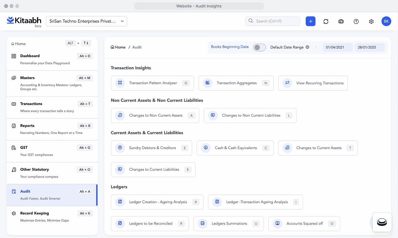 Get ready-made insights across ledgers, balances, and transactions.No manual fetching—Kitaabh does it for you.